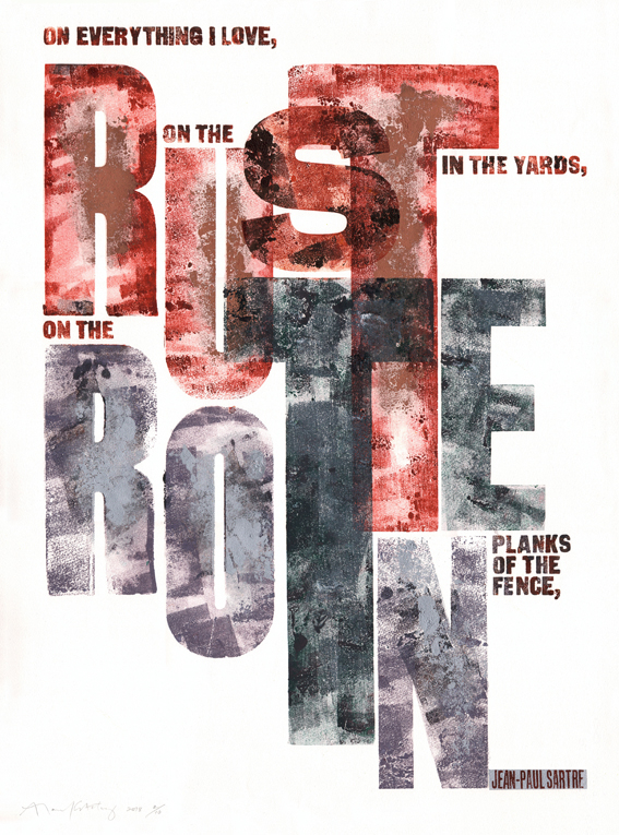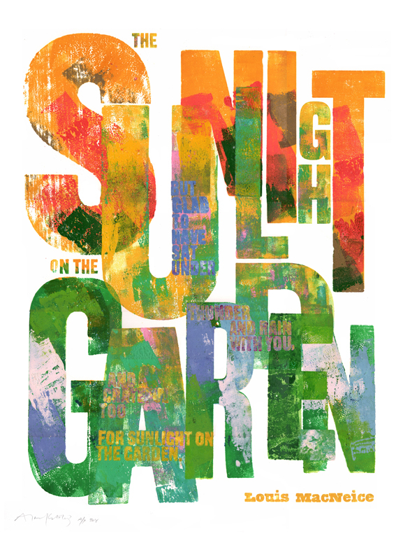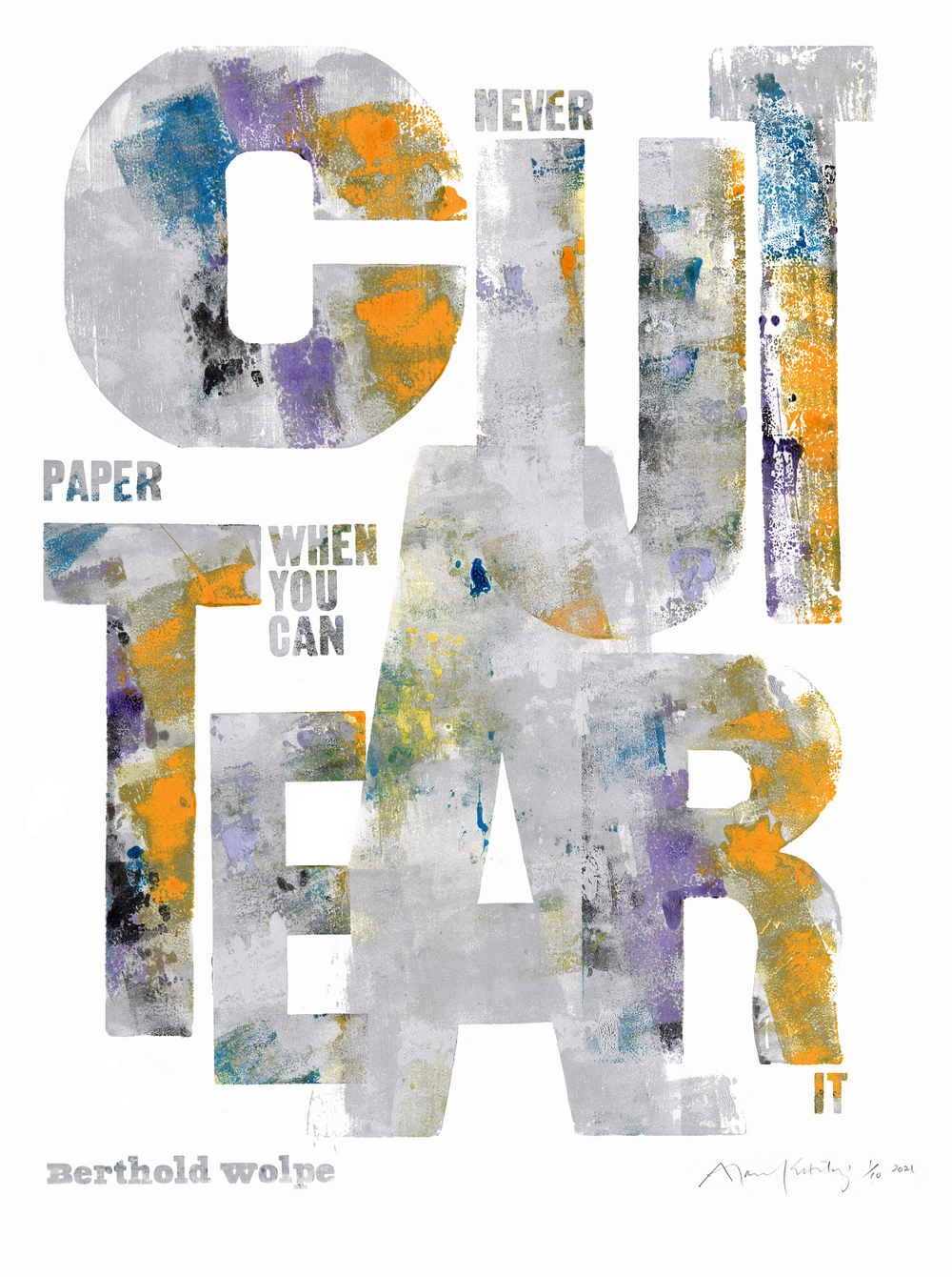 Alan Kitching is one of the world’s foremost practitioners of letterpress typographic design and printmaking. He is renowned for his expressive use of wood and metal letterforms in creating visuals for commissions and his own limited edition prints. Kitching cofounded the Experimental Printing Workshop with Anthony Froshaug and was influenced by him at Watford College of Technology in 1964. He later became partner at Omnific Studios where he started letterpress printing.