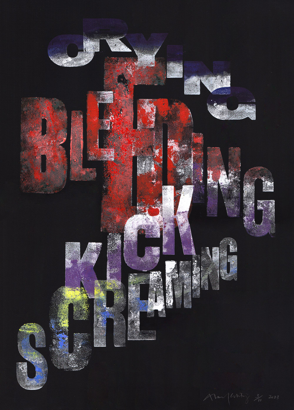 Alan Kitching is one of the world’s foremost practitioners of letterpress typographic design and printmaking. Alan is renowned for his expressive use of wood and letterforms in creating visuals for commissions and his own limited edition prints. In 1973 Alan began his own design practice in London with Colin Forbes. In 1977 he partnered with Derek Birdsall and Martin Lee at Omnific and started letterpress printing there in 1985. He began letterpress workshops in 1986 at Omnific Studios, Islington, London. He then went on to establish The Typography Workshop in Clerkenwell (1989). From 1994 he worked in partnership with designer/writer Celia Stothard (later his wife). In 1999, in partnership with designer and teacher, Celia Stothard FRSA, Kitching purchased a large collection of theatrical wood types, now named, ‘Entertaining Types’ and housed in Kennington, Lambeth, South London.