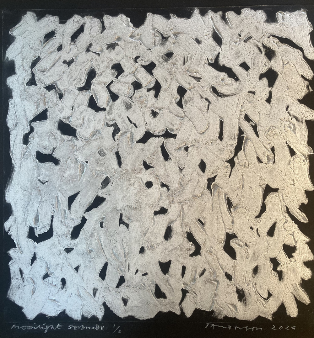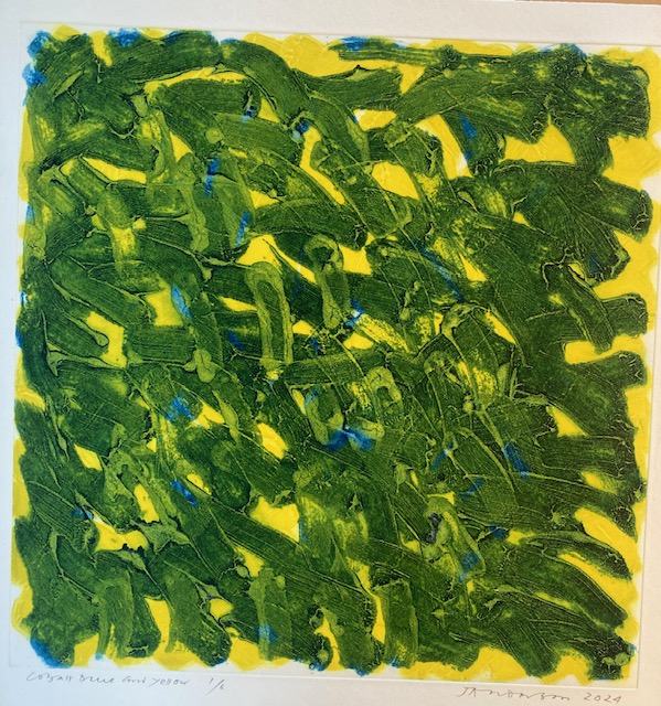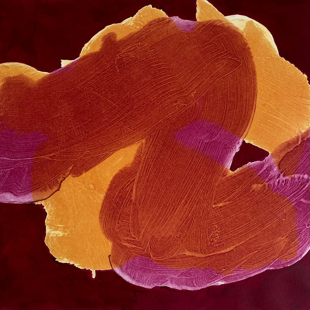 James Anderson, though working as a doctor, has always had a great interest in visual art - he interspersed a degree in history of art with a medical degree. His interest in printmaking has developed over the last ten years and has embraced many techniques including etching, chine collé, woodcut, and carborundum. He likes to explore the expressive quality of print through colour, material and gesture and particularly enjoys the painterly possibilities of carborundum. His work employs many of these techniques in a single print using multiple plates to exploit and demonstrate the different textures and qualities these different processes possess. For their gestural qualities his influences have included Robert Motherwell and Howard Hodgkin but he also enjoys the superlative linear etchings of David Hockney and Ben Nicholson.