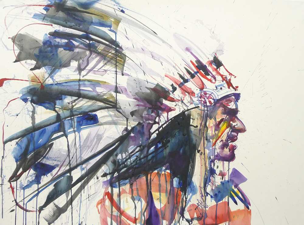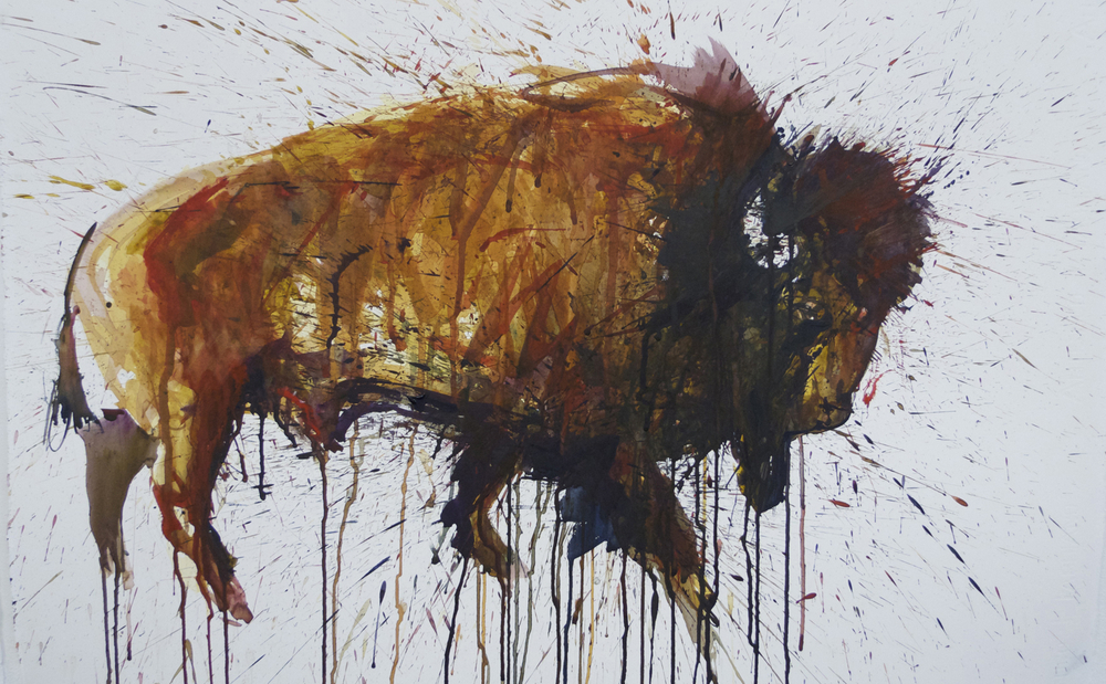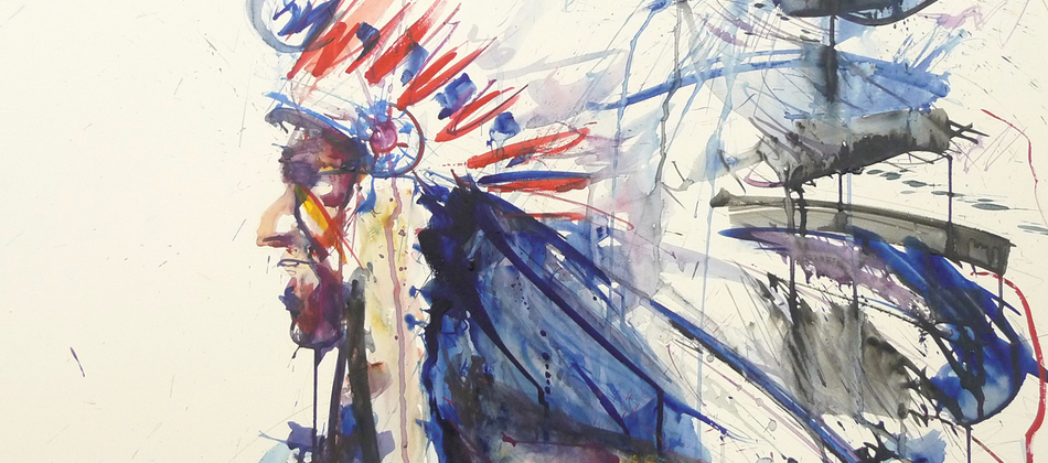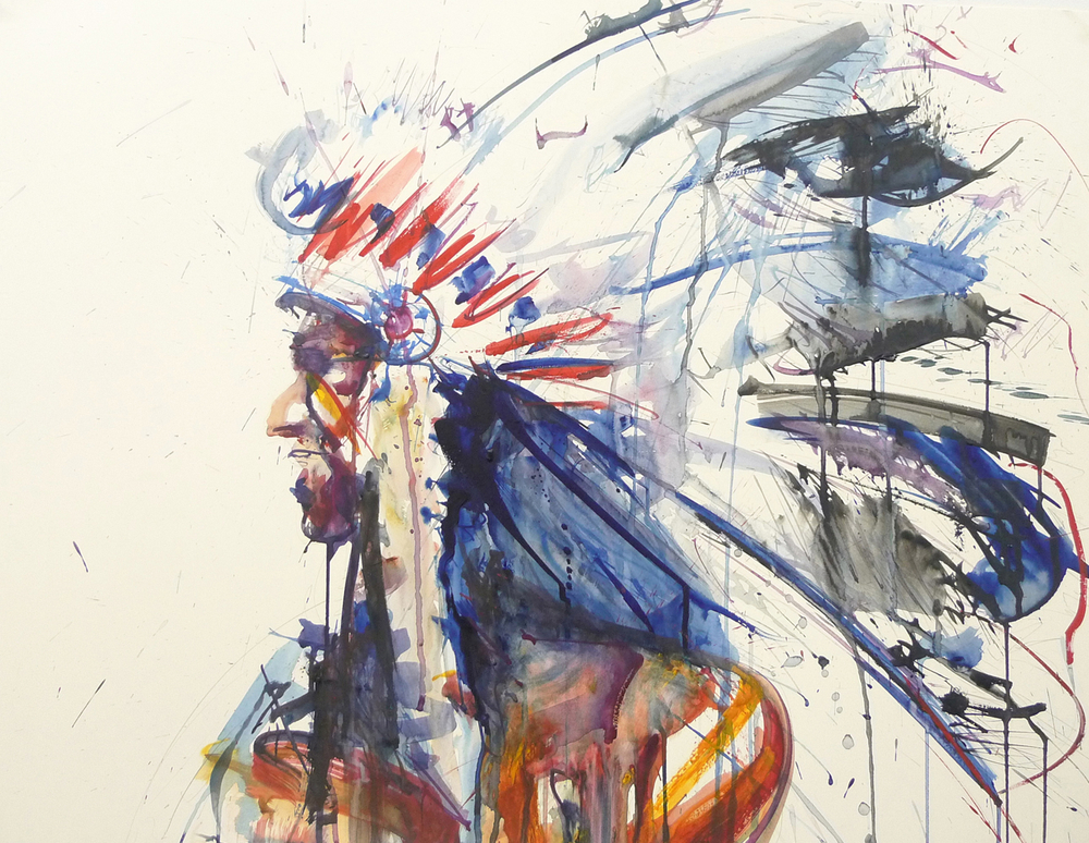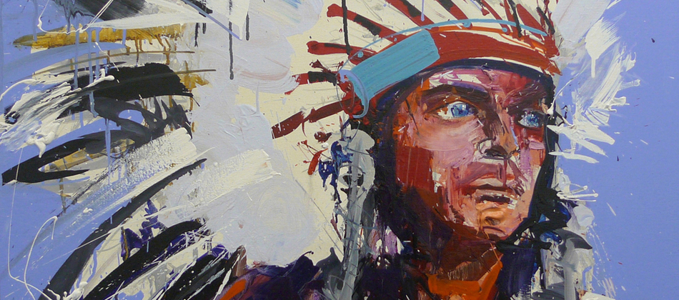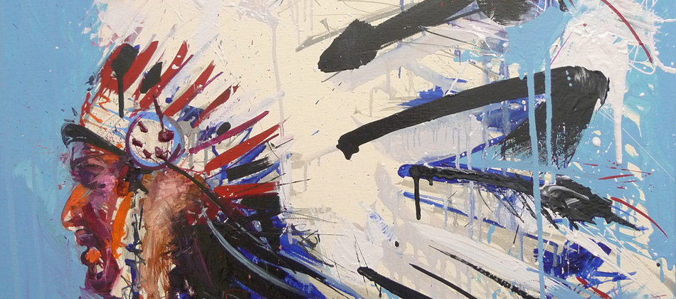 The golden age of the Western movie era is encapsulated in Dave Whites series of Technicolour oil paintings. High energy scenes, dramatic tension and sweeping Western backdrops could be said to be Whites innovative interpretation of the classic film still. The cultural inspiration of this period is evident in the apocalyptic themes of battles and stand offs. The turbulence and explosive movements are animated and presented through chaotic brushstrokes and the continuous energy of an artist dedicated to his own battle with the canvas.