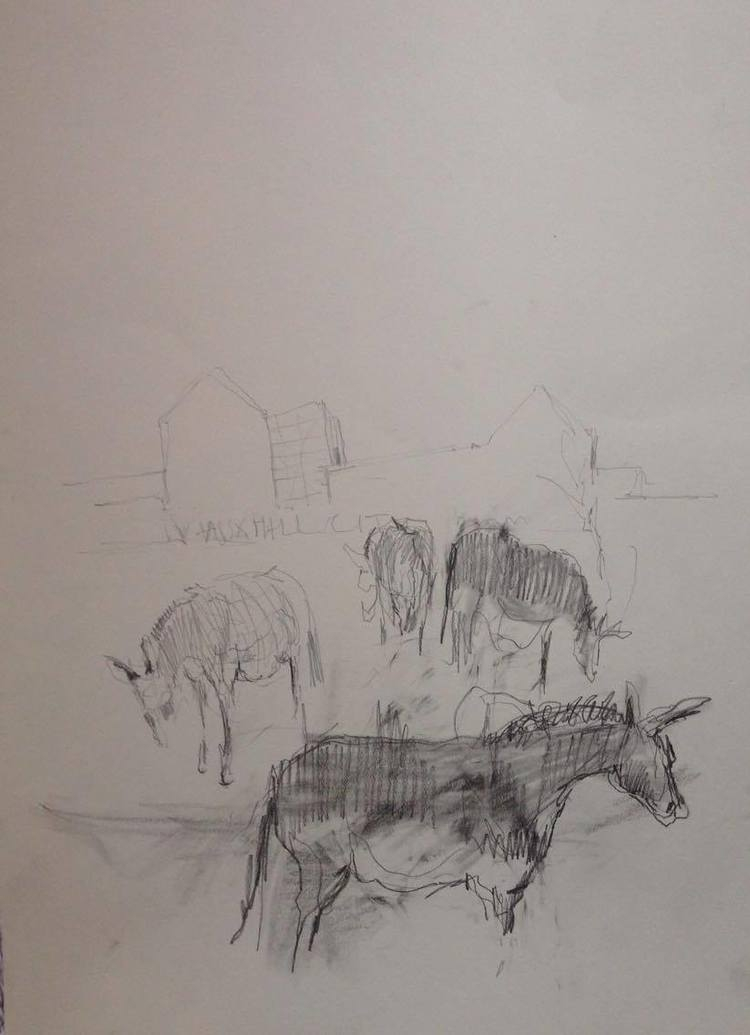 ‘I paint from life in the main but also more recently from drawings. A year exploring London entirely focusing on the practise of drawing (primarily outside) has changed the way I work. If it’s impossible to paint from life because of time or light constraints I find it is equally successful to paint from a tonal image without the distraction of colour in front of you. My time at The Royal Drawing School left me with an appreciation for the fluid and definite lines of a quick pencil drawing, because of their simplicity and success in conveying the depth of an idea.’ Beatrice Hasell-McCosh