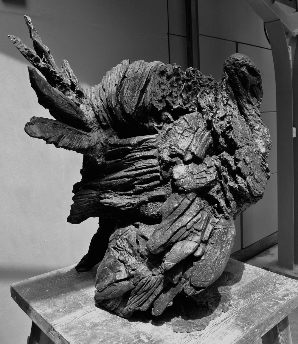 Emma says “As a figurative sculptor, my work is observational whilst expressing conceptual ideas. By trying to capture the fleeting expressions and essence of these animals I hope to generate human empathy for even the most ordinary of living beings. I try to convey vitality in my work through the use of texture and form, whilst embracing the developments that occur by chance in the process of making. An ongoing project is the drawing, modelling and casting in cement of pigeons, en masse they appear unremarkable but each one is individual.”
