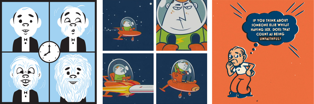 Born in rural Dorset, the diabolical Rod Hunt now inhabits the swampland of Greenwich, South London where he feeds mostly on shrubs and berries. Rod has developed a reputation for retro tinged illustrations & detailed character filled landscapes and among his client list he includes FHM, Maxim and Vodafone. Notably Rod illustrated the cover of the best selling environmental book ìChange the World 9 to 5î published by We Are What We Do. He is also Deputy Chairman of the Association of Illustrators.