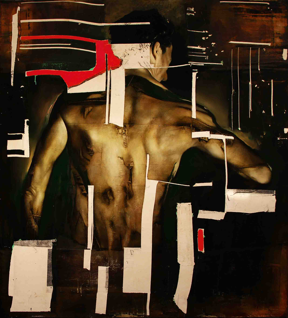 In this new series of work Tomas Watson is constantly painting until the work resonates, like musical variations. His work encompasses all disciplines, utilising collage, drawing, old photographs and painting onto canvas and jute cloth.