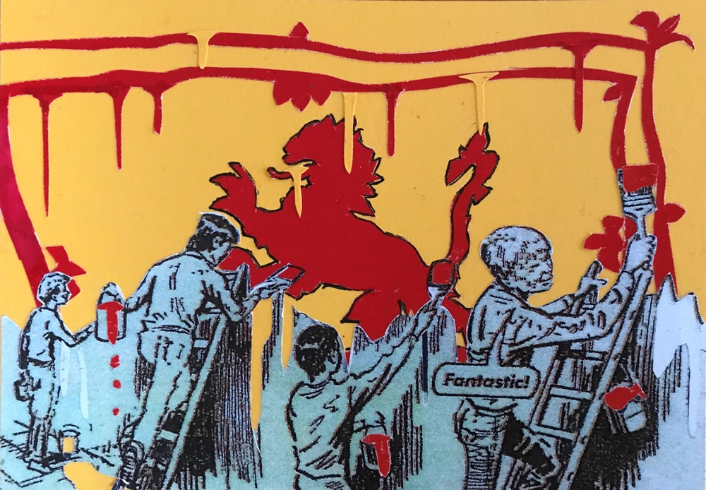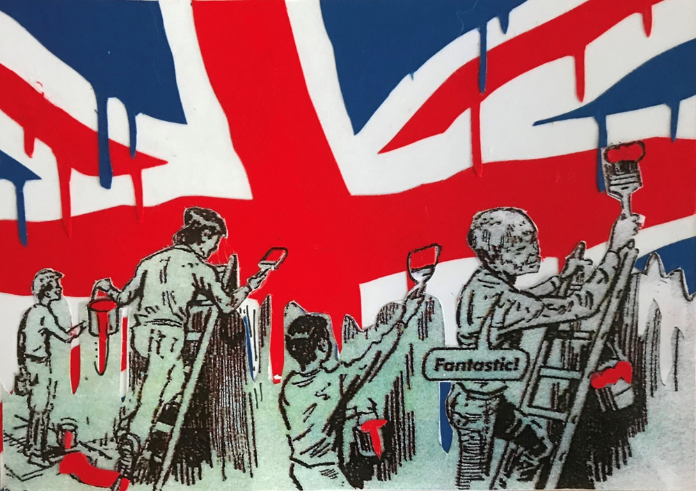 Chris Orr’s work has always been ‘of a moment’ and his quick drawings, entitled The Johnson Collection of Drawings, feature the politicians in various circumstances drawn with his usual wit and integrity. David Mach’s collages are well known. Both artists are Royal Academicians.