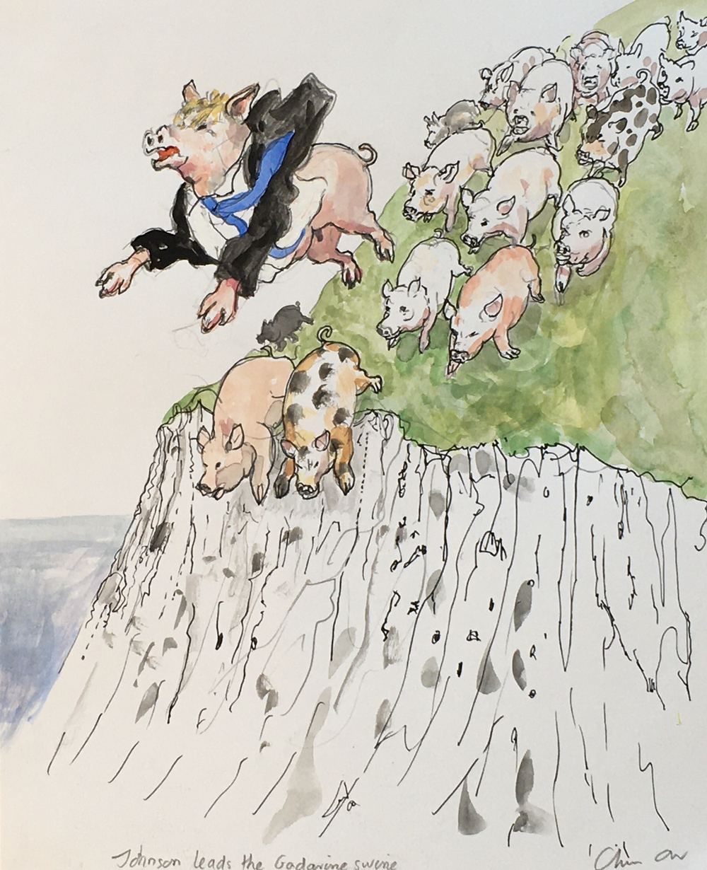 Chris is continuing the age of the satirical artist, known for their political satire and social observation from Hogarth, Rowlandson and Daumier through to Scarfe, Searle and then today’s cartoonists featured in the National newspapers.