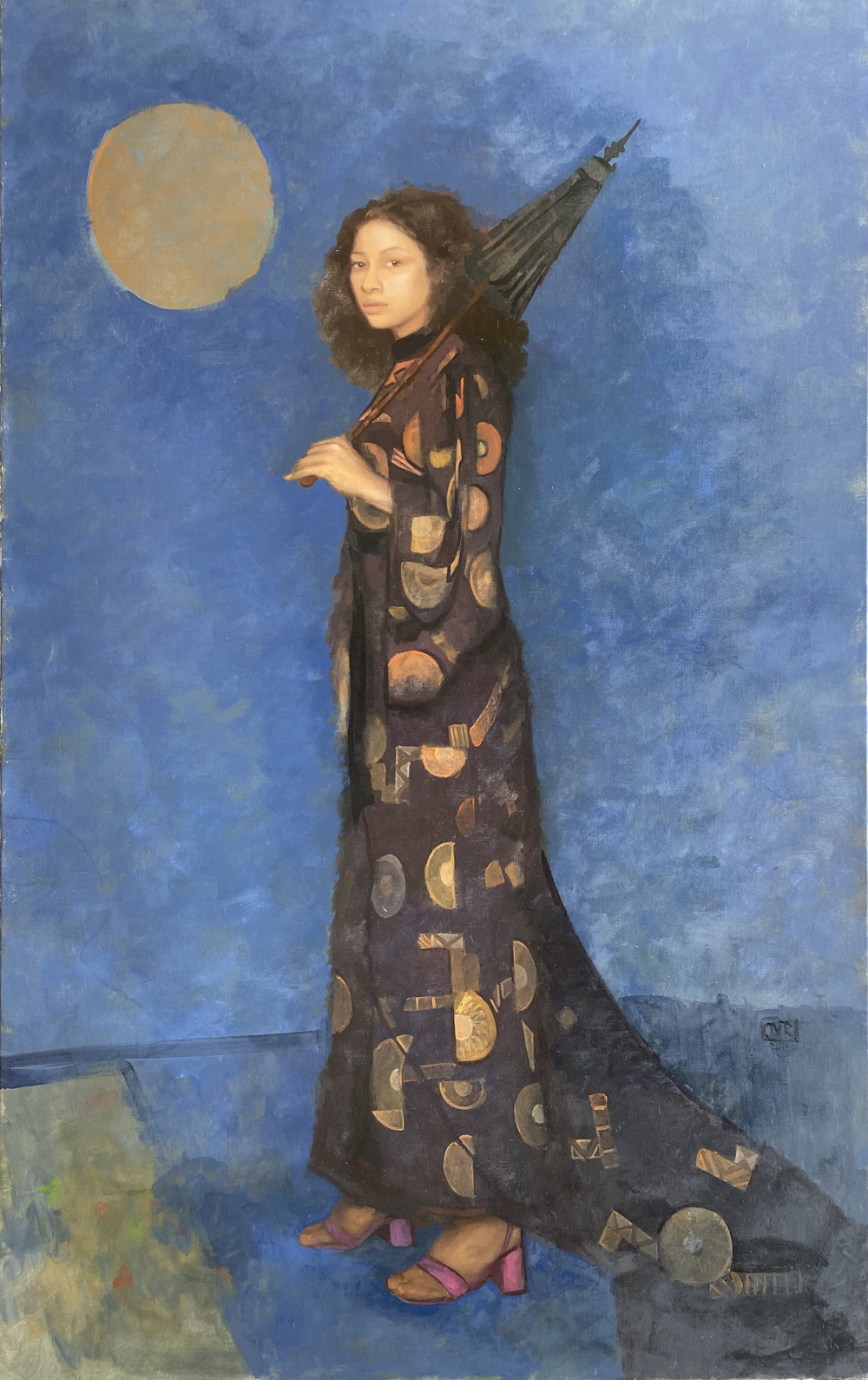 ‘Olivia is a portrait and figurative artist based in London. She is particularly interested in painting women, showing appreciation of elegance and subtlety of the female form. In any portrait painting, whilst it’s important to capture the light, fluidity and character of the subject, she thinks it’s equally as important to focus on the chemistry between the artist and the subject. She hopes to evoke a sense of harmony and balance or sometimes mystery and humour which then translates to the viewer. Most of the models Olivia has painted in this exhibition are old friends. Her passion and ambition is driven by these friendships as they continue to inspire her daily. She hopes to immortalise the beauty and unique characters of each friend.’