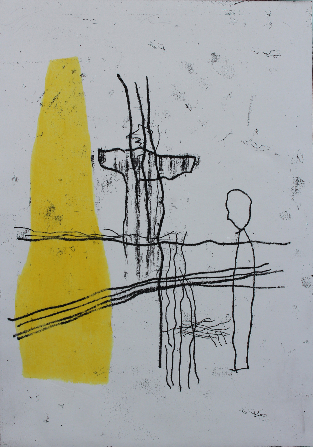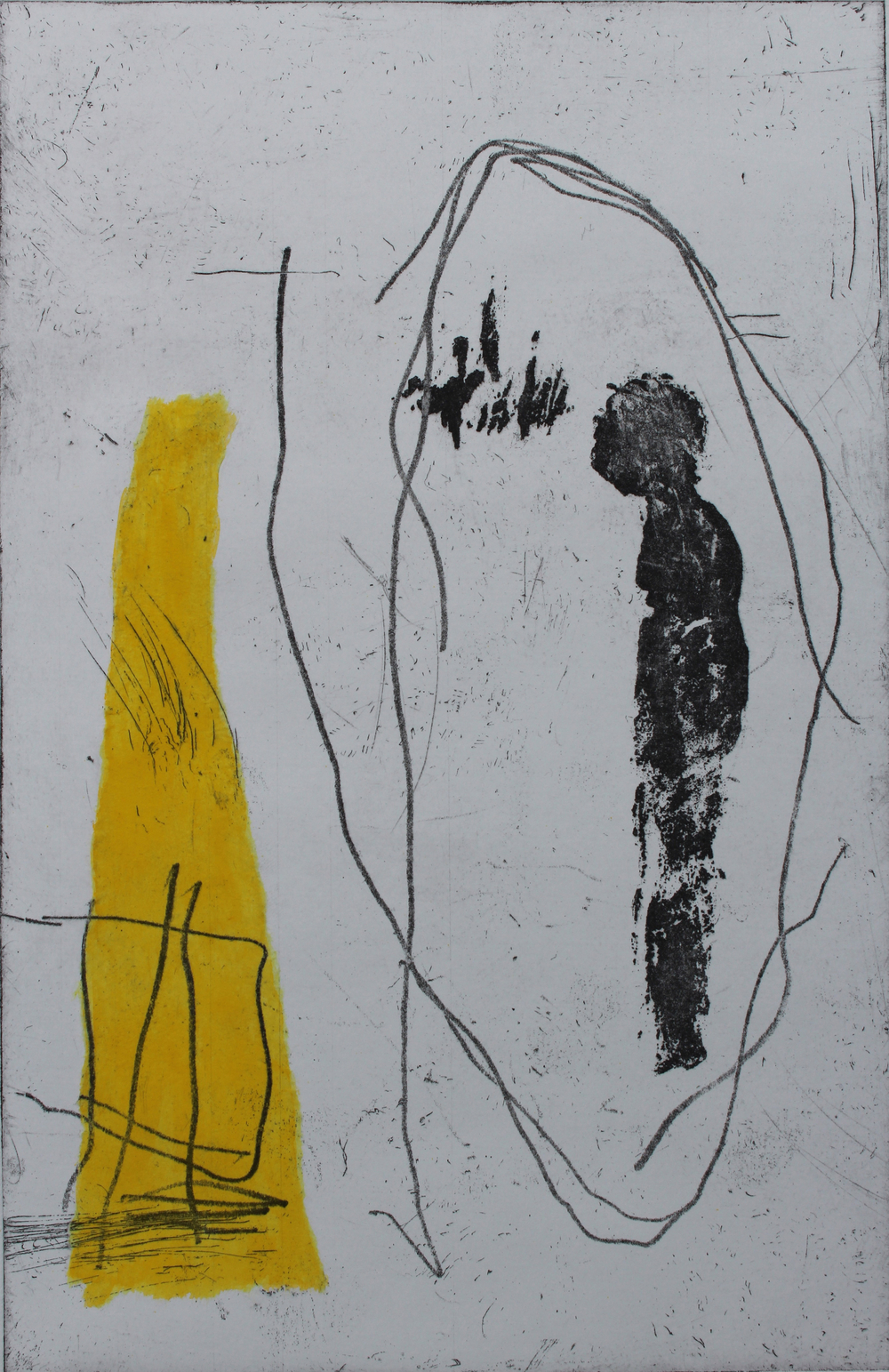 What marks them out as individuals is the remarkable diversity of the disciplines that inform their work: Fine Art, Graphic Design, Book Arts and Physical/Cultural Geography. What binds them together is a shared interest in the materials and methods of printmaking. This makes itself felt in the works in the show, which have been made across a wide range of media, taking in etching, monotype, silkscreen, linocut, and site specific printmaking.