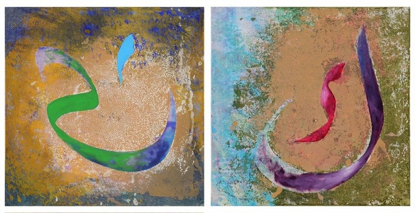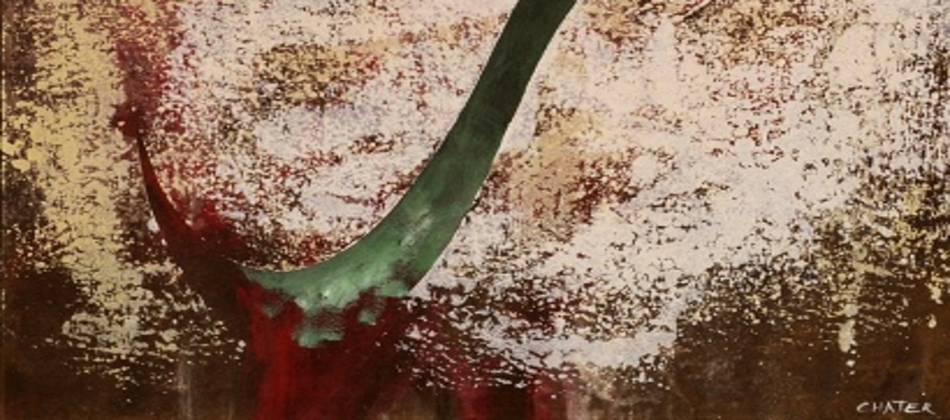 Nourredine Chater Chater states that his dynamic letters are the result of his ongoing studies which are influenced by a rapidly changing Moroccan society. His paintings are devoted to calligraphy and filled with gracefully encoded messages. From a distance the letters appear like secret signs. His playfulness with the graph is emphasised by his selection of colours. He is fond of natural hues and chooses vibrant shades for a more contemporary twist. The glyph predominates and symbolises both a point of entry and departure, and is a portal for an exploration of the sublime.