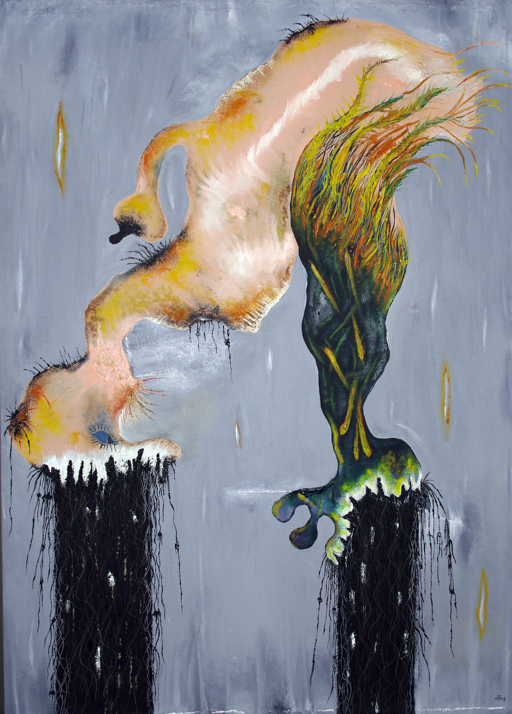 Karim Attar Attar grew up during a time when his native country experienced cultural transitions and political reforms. One way or another, these circumstances informed his artistic practice. His depictions are dominated by the human form and often portrayed in a transitional state. Attar’s opaque photographs often represent dancing dreamlike figures in contrast to his bold, estranged painted hybrids. His painterly depictions are emotionally charged and appear isolated against flat nondescript backgrounds. Torsos, limbs and innards formalise his sculptural language and seem to be born from his painterly mind, whereas his unique performances embody movement and children’s games.