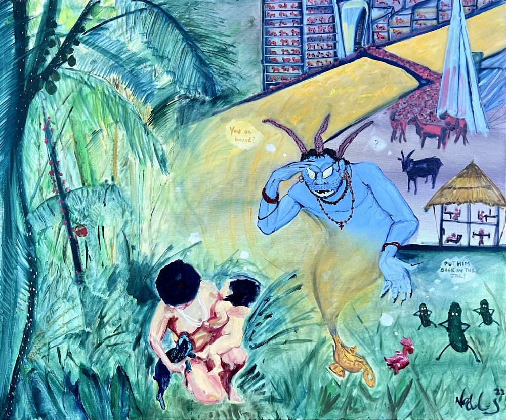 Leaning into the views of William Blake, I call for a move away from a focus purely on rationalism, embracing dream-like states to harness our creative potential. In this sense there are thematic comparisons to the works of the surrealist masters, while using a colour composition which has been compared to Peter Doig and Edvard Munch.