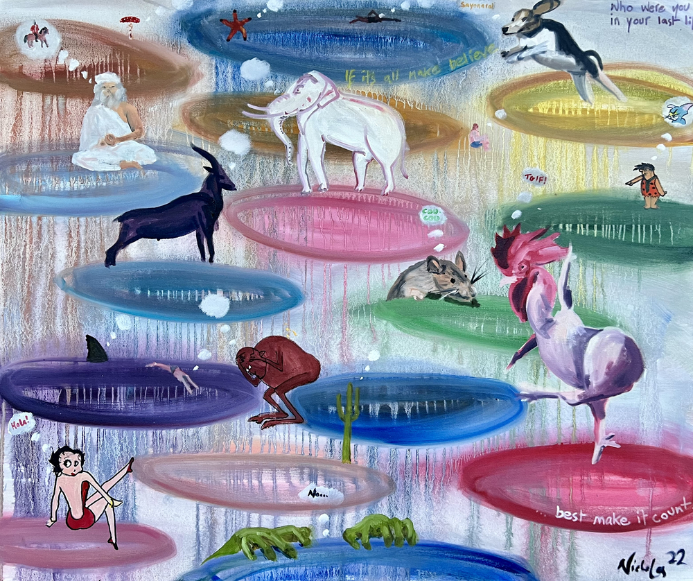 These characters are portrayed within fantastical storylines which come to me intuitively after seeing an image, an experience or coming to a realization about our behaviour.