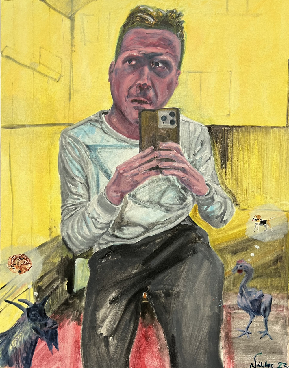 I have also included two portraits, including a self-portrait, which feature the rooster and the goat – reinforcing the theme.