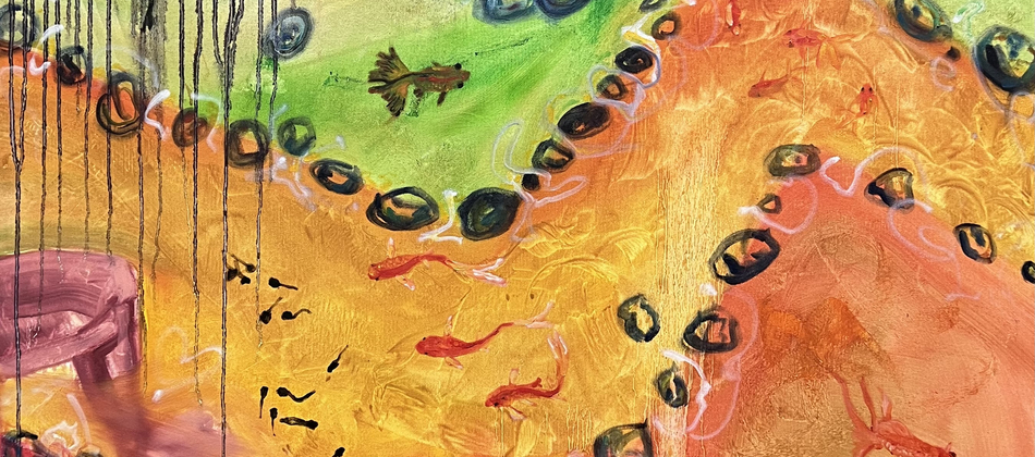 My practice centres mainly around oil painting and makes use of collage and other mediums to create impact. The artworks are accompanied by poetry.