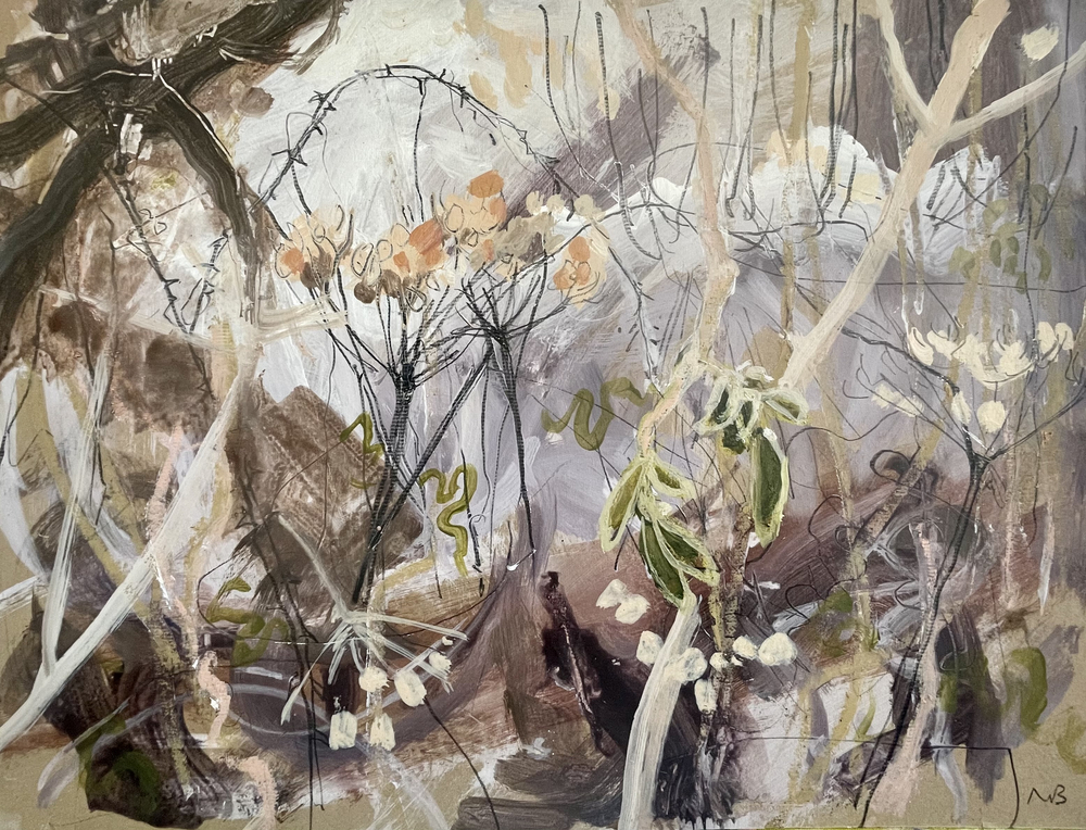 This show includes work made in Moclin, a small town outside Granada in Andalusia, in Aldeburgh whilst on an artist’s residency at the Beach Lookout, a series made about Battersea Park and the Henry Moore sculpture by the lake and a collection which is the result of drawings made from video clips whilst out walking the Sussex woods and hedgerows in winter.