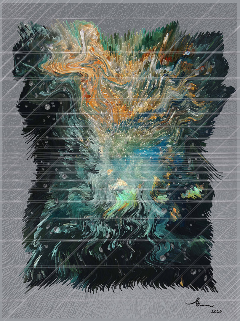 “Oceanic Whispers” is a project that has been developing over the years, continuing the previous “Ocean” series, and entering the deep sea for a new artistic creation and practice. As the name of the series suggests, BAI SHUI wants to bring those secrets to us, revealing how deep and expansive the sea truly is. By exploring both digital collage and physical materials, she breaks the limitations of two-dimensional painting and uses a new modern aesthetic concept to convey to the audience that the sea is so deep and so vast that it embraces and nurtures.