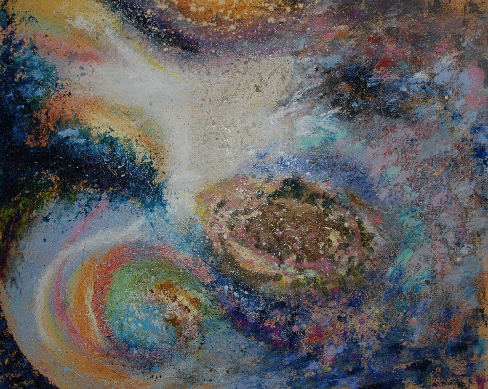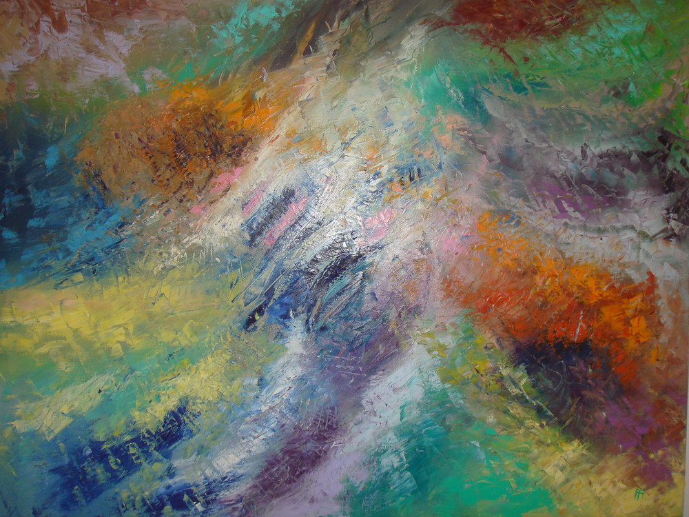 “To outreach this level, it implies a spirit of spontaneity, a limitless trust in a creative intuition. The spirit is free, unlimited, it draws from an immaterial universe where everything becomes energy and vibe. The painting becomes a transmitter which brings the undefined into a visible and materialized world. It will generate within us an emotion well beyond our conscience.”