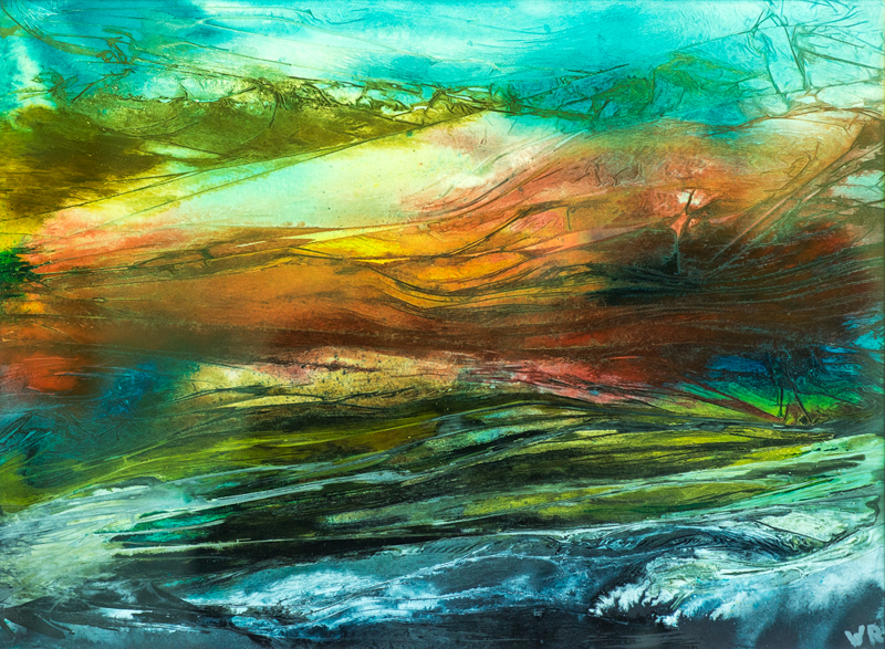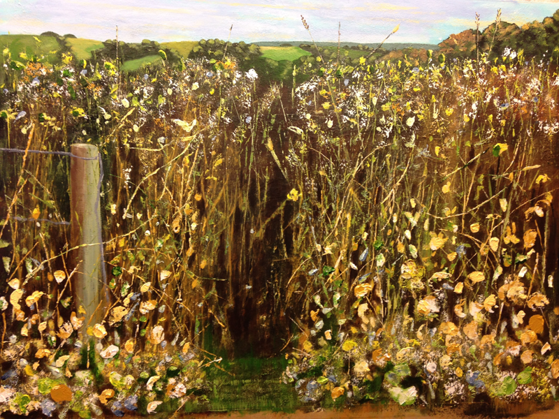 Russell says, ‘If there is a purpose in the art I try to pursue then it’s in seeking to respond to joy’. What is obvious from the work is not just the joy he gets from looking at and being in the countryside whether in England or Portugal, it is his joy in experimenting with paint, in mixing and using colour.