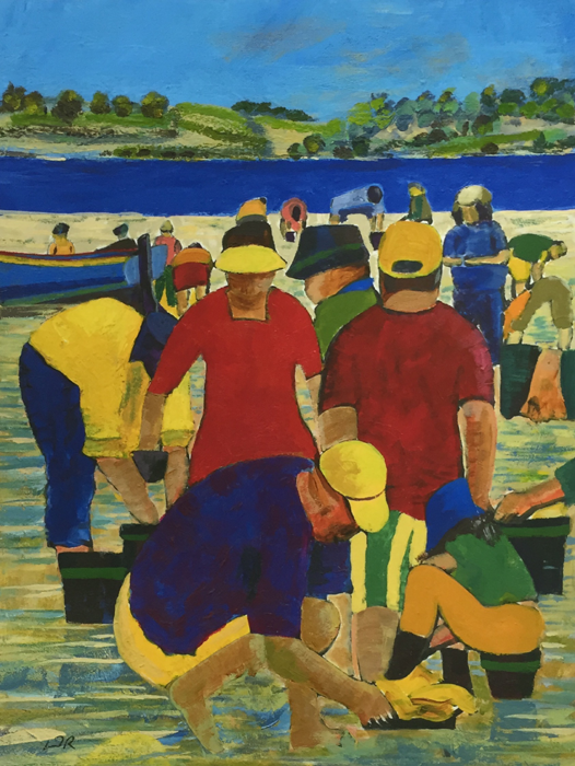 For the last 20 years working quietly at home in Liverpool and Portugal, Russell has been attending classes, honing his skills, developing his ideas, experimenting with line and colour and form. Above all he says, ‘when rather late in life I began to try and paint and draw I had to start using my eyes much more, to try and learn to see as well as to look…I think for a large part of my life I used my ears first and eyes second’.