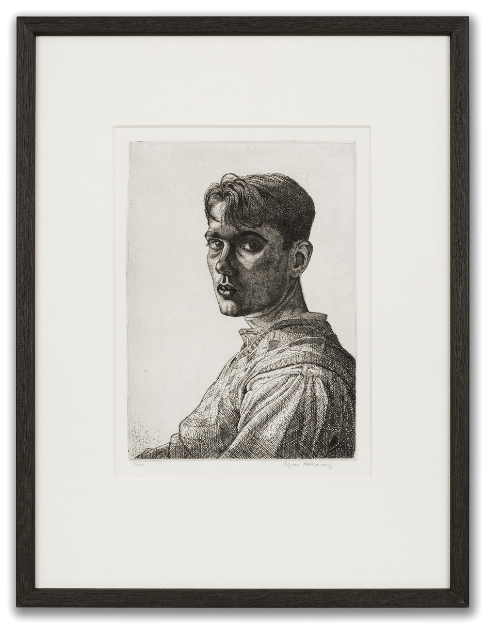 Also of note is an early self-portrait by Edgar Holloway, a self-taught artist, who created a series of self-portraits throughout his life. This work is particularly sensitive and captivating, and especially extraordinary as it was created when the artist was only 18.