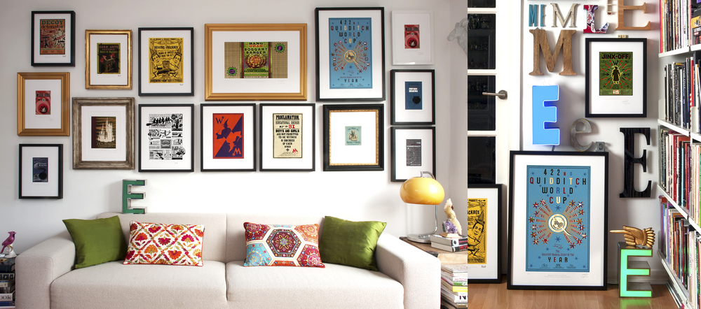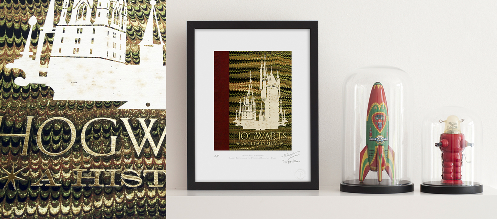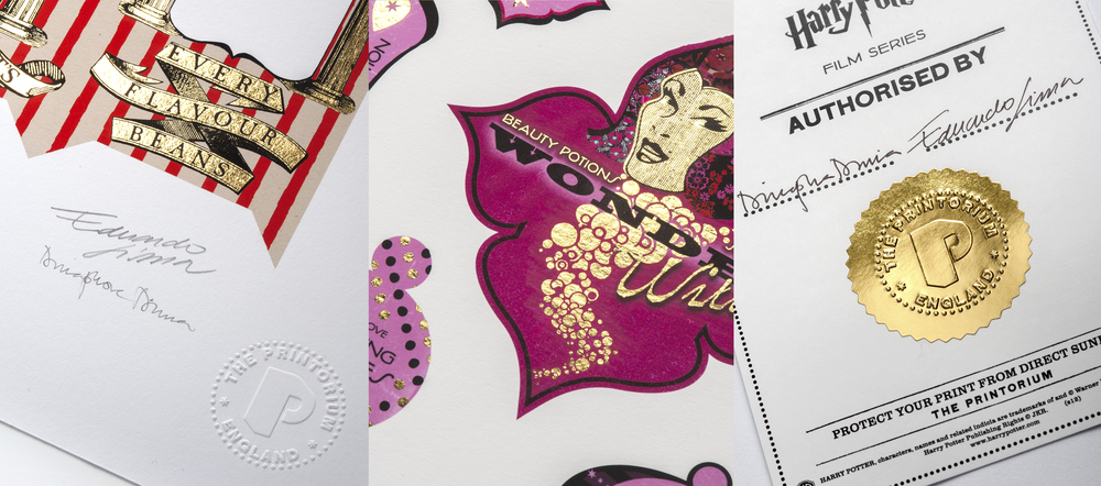 This exhibition showcases graphic designs from the Harry Potter films by Miraphora Mina and Eduardo Lima, reproduced as limited edition art prints which they produce from their print studio, The Printorium.
