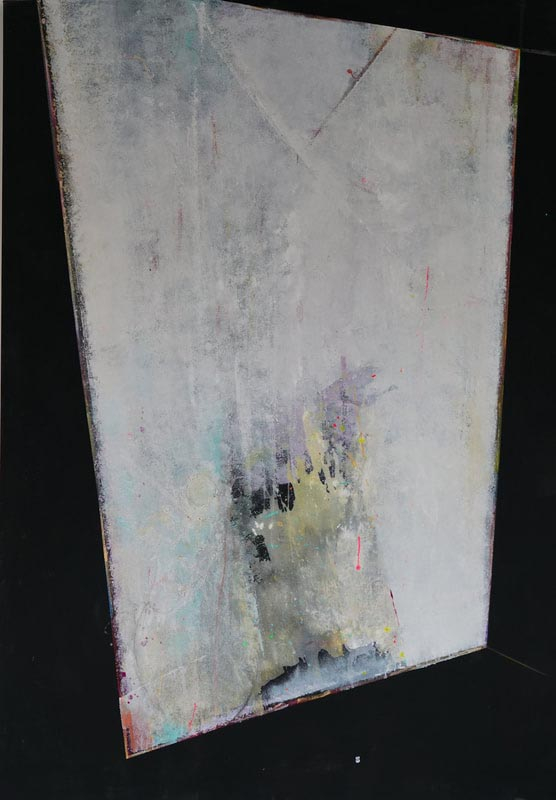 In her White Room and Mnemosyne series, space is shaped and defined by lines and structures that recall architectural elements, while in others the artist uses paint to veil internal spaces that can be glimpsed beneath.