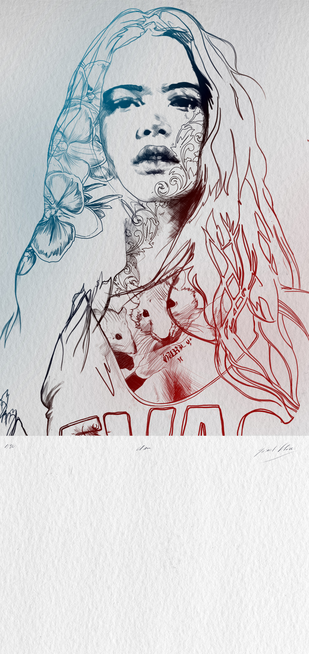 The sensuality and elegance of the graphics, black lines, ink and watercolour, of a mouth, a neckline, a curve of a hip: this is what forms the basis of both Moreno’s personal and commercial career as an illustrator. The exhibition ‘Women’ emerged from Moreno’s need to create truly free personal work: all these elements of sensuality confluence with a meticulous attention for detail, however untethered.