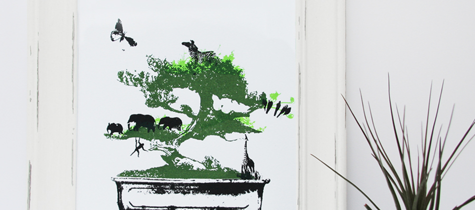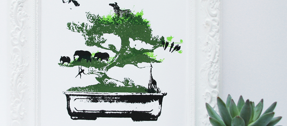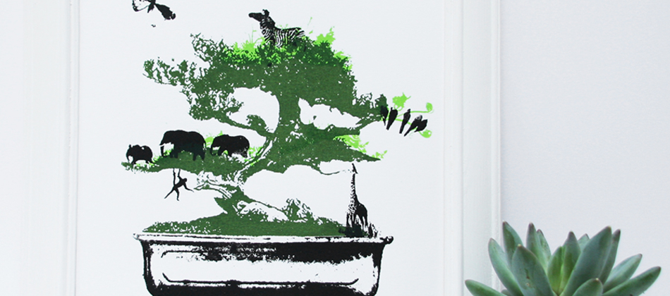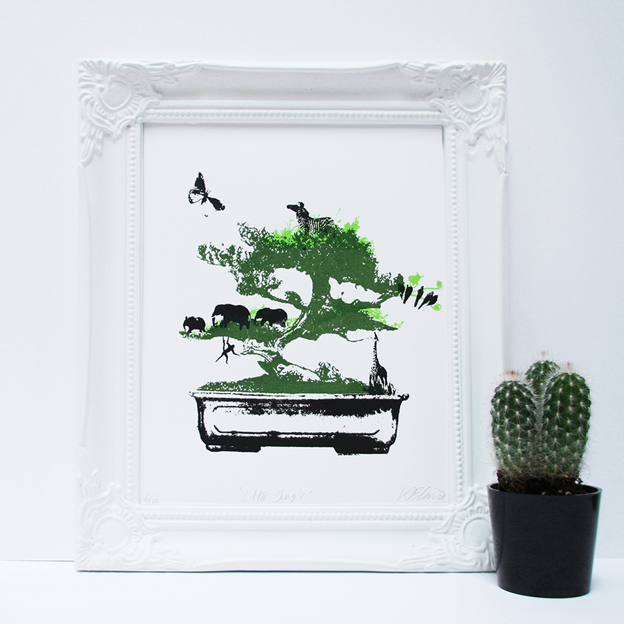 Three colour silk screen print on Fabriano Ruvidi 200gsm paper. This work is sold mounted or framed. There are four styles of frame to choose from, they can all be seen in the photographs.