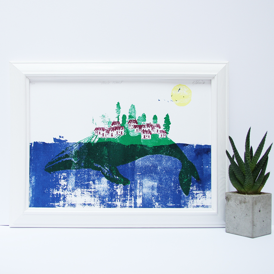 Limited print run of 100, 4 colour silk screen print on Fabriano Ruvidi 200gsm paper. This work is sold mounted or framed. There are two styles of frame to choose from, they can all be seen in the photographs. Hand printed by the artist.